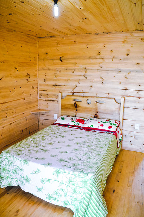 A pousada conta com 9 chalés estilo rústicos, porém confortáveis e acolhedores. Tem capacidade para casal, 3 ou 4 pessoas.