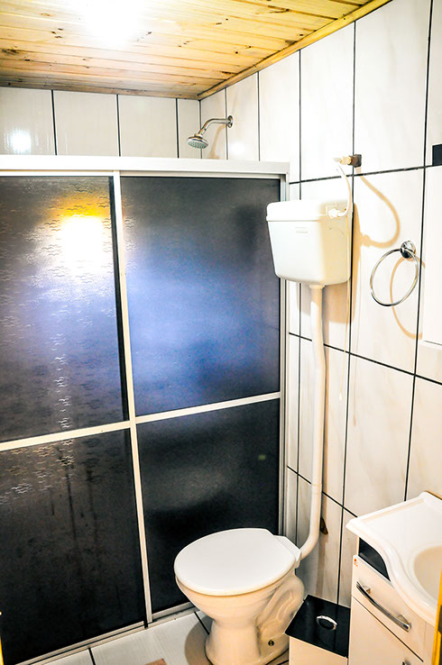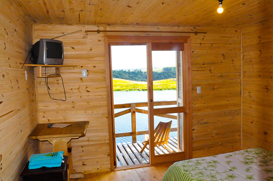 Todos com banheiro privativo com chuveiro a gás, aquecedor, TV e varanda com linda vista para o lago.