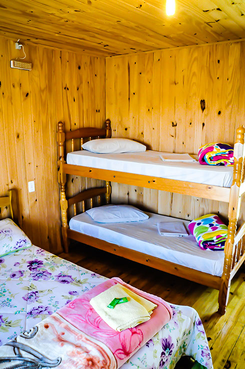 A pousada conta com 9 chalés estilo rústicos, porém confortáveis e acolhedores. Tem capacidade para casal, 3 ou 4 pessoas.