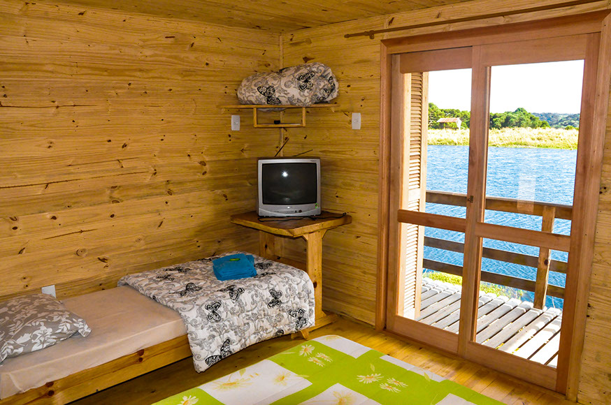 Todos com banheiro privativo com chuveiro a gás, aquecedor, TV e varanda com linda vista para o lago.