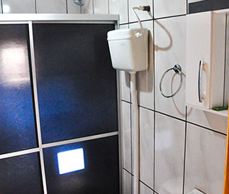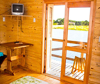 Todos com banheiro privativo com chuveiro a gás, aquecedor, TV e varanda com linda vista para o lago.